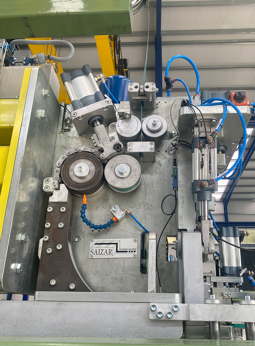 En SAIZAR trabajamos con un modelo de cabezal exclusivo que permite flejar productos con el fleje de poliéster desde una anchura de 16 mm hasta 32 mm. Para poder trabajar con las diferentes anchuras de fleje, es necesario sustituir unas pocas piezas del cabezal de flejado.