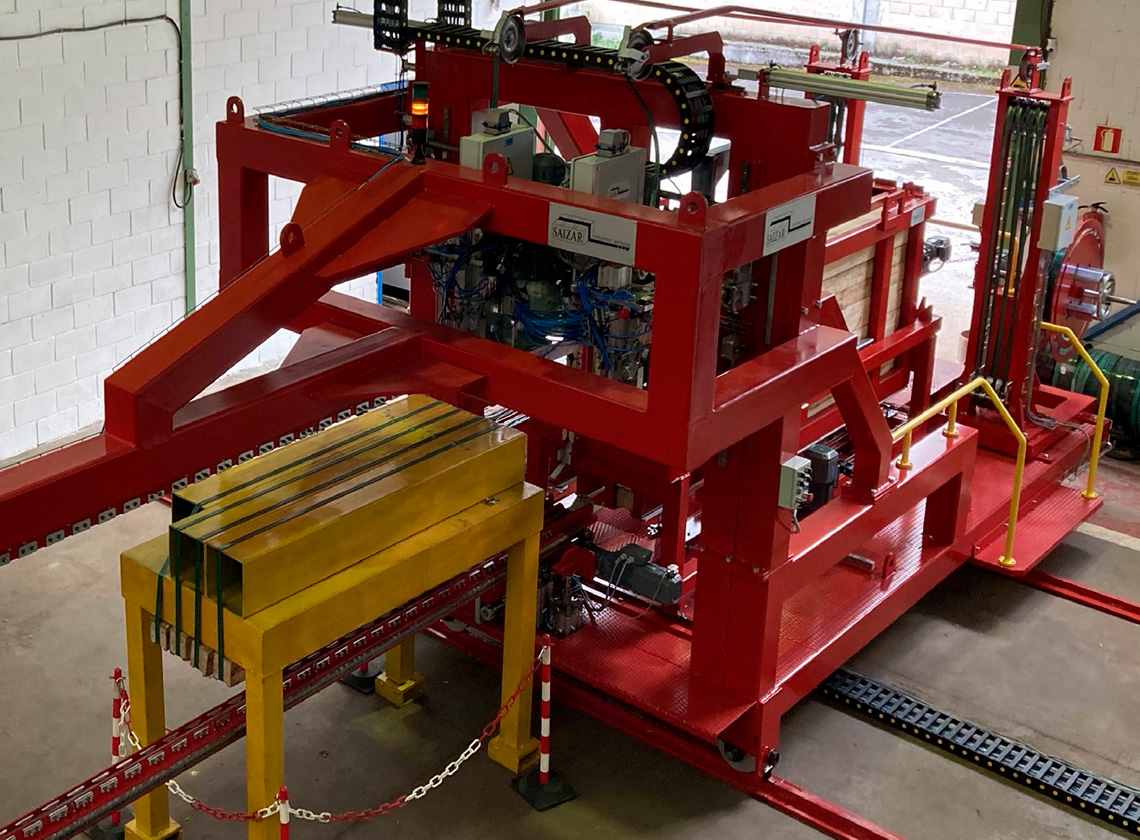 Sí, en aplicaciones como paquetes de láminas planteamos flejado transversal y longitudinal, y definimos si se mueve la máquina o el paquete según tu línea. También es posible que una sola flejadora realice solo los flejados transversales, ya sea de los paquetes de láminas, tubos, tuberías, perfiles y barras.